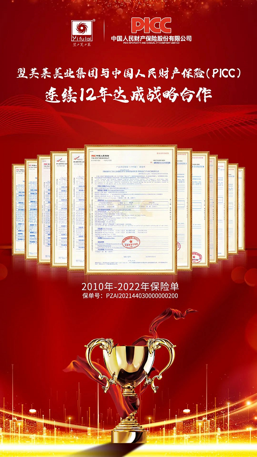 2021年4月1日,翌芙萊美業(yè)集團與中國人民財產(chǎn)保險公司(PICC)再度達成戰(zhàn)略合作,簽訂產(chǎn)品保險續(xù)保協(xié)議,迄今為止,翌芙萊美業(yè)集團已經(jīng)連續(xù)12年受到中國人民財產(chǎn)保險PICC的品質(zhì)鑒定與質(zhì)量保障。